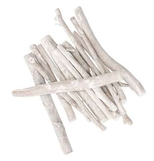 Bâtons de bois flotté, couleur : blanc, longueur : env. 11-12 cm, contenu : 100 g = env. 14-26 pièces. (le contenu varie selon l'épaisseur des bâtons).