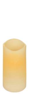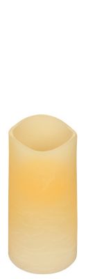 Bougie LED vacillante en cire véritable à piles, avec LED blanc chaud. Couleur : crème, dimensions : hauteur 14 cm, Ø 7,5 cm. Grâce à la minuterie intégrée, la bougie s’allume automatiquement chaque jour à la même heure pendant 4 ou 8 heures. Uniquement adaptée à une utilisation en intérieur. Fonctionne avec 2 piles AA 1,5 V (non incluses).