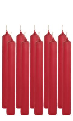 Bougies chandelles, couleur : rouge carmin, dimension : 17,5 cm de haut, 2 cm Ø, contenu : 10 pièces.
