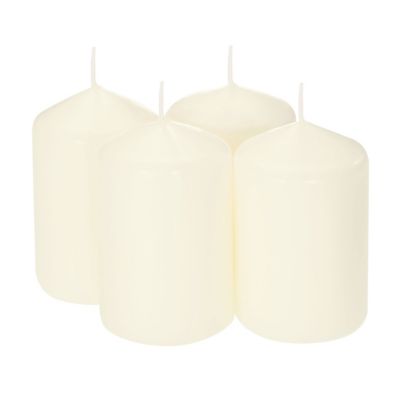 Bougies cylindriques "mini", idéales pour les photophores. Couleur : crème, dimensions : 6,2 x 4,8 cm Ø, contenu : 4 pièces.