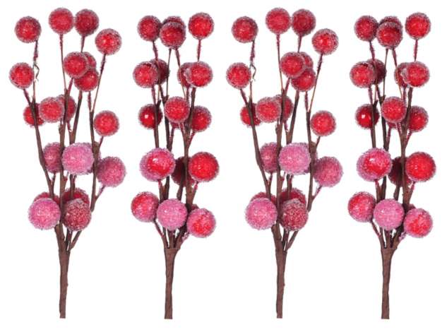 Branches de baies givrées, rouge clair/rouge foncé, 4 pièces