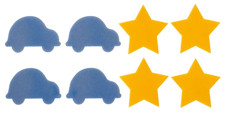 buttinette Antidérapants "voitures & étoiles", couleur : bleu et jaune, dim. : 3,3–3,9 cm, contenu : 8 antidérapants et une notice explicative.