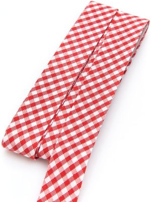 buttinette Biais en coton "carreaux vichy", rouge/blanc, largeur : 2 cm, pré-plié de 4 cm à 2 cm, longueur : 5 m. Pour ourler et orner du linge de table, du linge de lit, des rideaux, des vêtements, des accessoires, des objets de déco, etc.