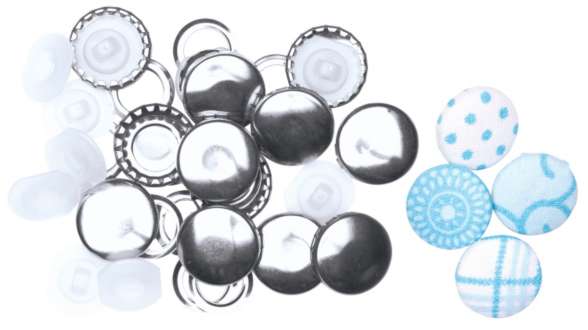 Boutons à recouvrir - buttinette, en laiton, diamètre : 15 mm, coloris : argenté, 15 pièces (avec outil de pose et mode d´emploi).