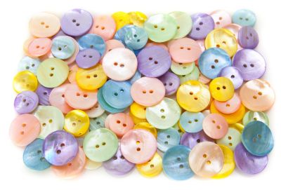 buttinette Boutons nacrés, tons pastel, rond, dim. : 15 mm Ø et 20 mm Ø, contenu : 100 pièces (5 à 7 pièces par couleur et diamètre).