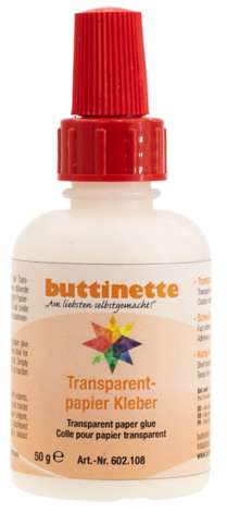 Que ce soit pour des vitraux de fenêtres, cerf-volants ou lampions – la colle transparente pour papier permet de colle parfaitement le papier sans traces de colle. La colle transparente pour papier est aussi adaptée pour coller du papier kraft, du carton et des papiers couchés ou glacés.