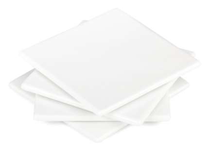 buttinette Dessous de plat, blanc, en porcelaine, avec des pieds en mousse pour éviter le glissement et des rayures sur la surface, dim. : 9,5 x 9,5 cm, contenu : 4 pièces. Décorez les dessous de plat avec des stylos pour porcelaine, serviettes, etc.