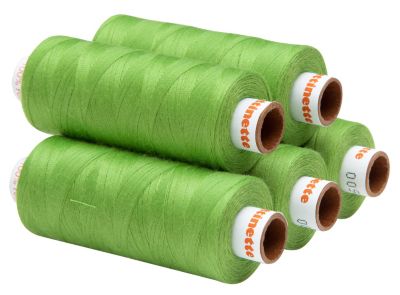 buttinette Fil à coudre universel, couleur : vert printemps, grosseur du fil : 100, épaisseur d’aiguille conseillée : 60-100, contenu : 5 bobines, 500 m par bobine. Composition : 100 % polyester.