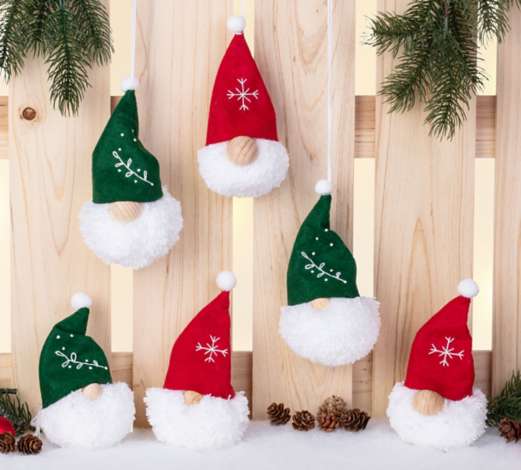 Kit créatif "pompon lutin", exclusivité buttinette, pour réaliser 6 lutins de 7 x 15 cm. Contenu : 6 bonnets en feutrine rouge et verte, 2 pelotes de laine de 50 g, 3 demi-boules en bois de 15 mm, 3 demi-boules en bois de 25 mm, gabarit pour pompon de 7 cm et un mode d'emploi.