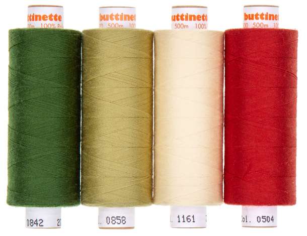 buttinette Lot de fils à coudre "christmas", grosseur du fil : 100, épaisseur d’aiguille conseillée : 60-100, contenu : 4 bobines de 500 m. Composition : 100 % polyester.