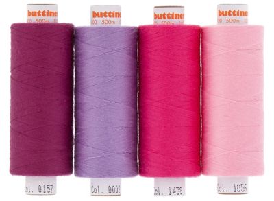 buttinette Lot de fils à coudre "tons roses", grosseur : 100, épaisseur d'aiguille : 60-100, contenu : 4 bobines, 500 m par bobine. Composition : 100 % polyester
