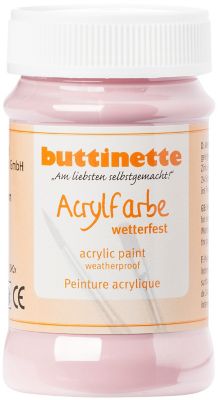 buttinette Peinture acrylique résistante aux intempéries, à utiliser comme première couche ou à peindre sur du bois, terre cuite, zinc, polystyrène, etc. Peinture mate, très couvrant, diluable à l'eau, résistant après 24 h de séchage, contenu : flacon de 100 ml.