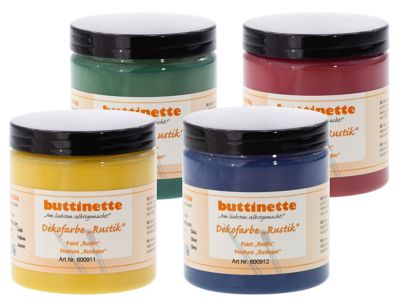 buttinette Peinture déco "rustique", différentes couleurs, 250 ml, parfait pour la peinture des objets de décoration en bois, terre cuite, etc., pour l'intérieur, contenu : 250 ml.