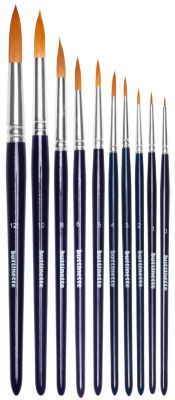 buttinette Pinceaux ronds avec poils en nylon, rond, pour de divers techniques de peinture, dimensions différentes : n° 0–12, longueurs : 16,5-21 cm, contenu : 10 pièces.