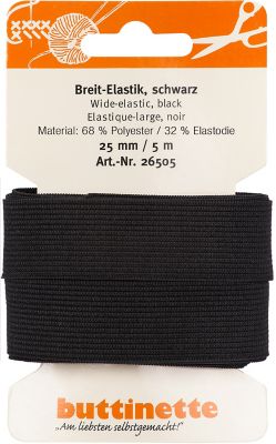 buttinette Ruban élastique "large", noir, largeur : 25 mm, longueur : 5 m