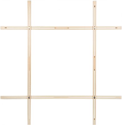 Cadre pour peinture sur soie en bois massif, avec vis papillon, réglable. Dimensions extérieures : 106,4 x 106,4 cm, dimensions intérieures max. 99 x 99 cm.