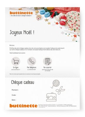 Vous êtes en panne d'idée cadeau ? Voici un cadeau original de buttinette ! Nous vous proposons un chèque-cadeau pour notre boutique en ligne.