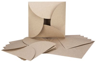 Cartes pliables et enveloppes en papier recyclable, marron, dim. carte fermée : 140 x 140 mm, carte ouverte : 275 x 275 mm, grammage : 240 g/m², dim. enveloppes : 150 x 150 mm, grammage : 120 g/m², contenu : 5 cartes et 5 enveloppes.