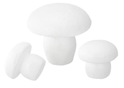 Champignons en polystyrène, couleur : blanc, dim. : 7 cm et 13 cm, contenu : 2 x 7 cm et 1 x 13 cm = 3 champignons.