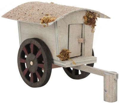 Charrette de berger, en bois, avec barre de traction, dimensions : 9 cm (hauteur) x 9 cm (largeur) x 15 cm (longueur).