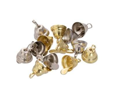 Clochettes en métal, couleurs : argenté et doré, dim. : 1,2 cm, contenu : 48 clochettes.