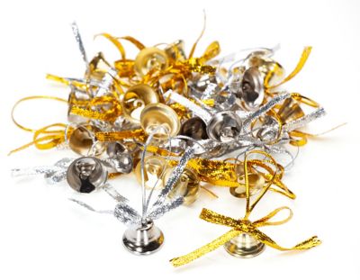 Clochettes en métal, couleurs : argenté et doré, dimensions : 1,5 cm et 2 cm, contenu : 24 pièces.