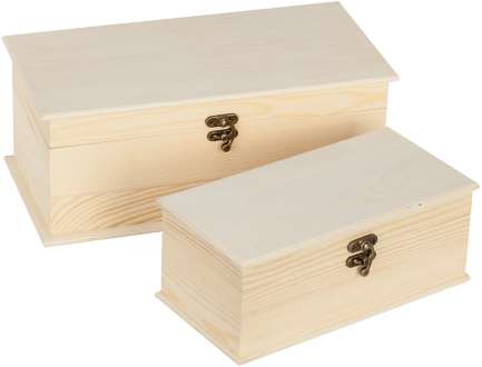 Coffrets en bois, à peindre et décorer, couleur : brut, dim. : 32 x 16 x 12,5 cm et 24 x 12 x 10 cm, contenu : 2 pièces.