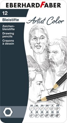 Lot de crayons à papier, contenu : 12 crayons à dessin pour écrire et dessiner, de différentes duretés, livrés dans un étui pratique en métal.