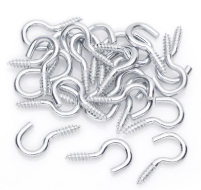 Crochets à visser, argenté, avec filetage, anneau "ouvert", longueur : 2 cm, diamètre anneau : 1 cm, ouverture : 0,5 cm, contenu : 24 pièces, zingués.