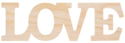 Écriture en bois déco "Love", à peindre et à personnaliser, dimensions : 35 x 11 x 1 cm.