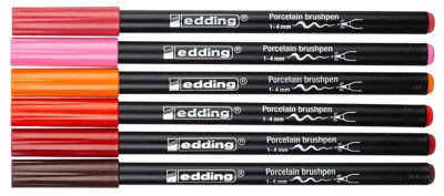 edding Set de feutres pinceaux pour porcelaine, contenu : 6 feutres pinceaux dans les couleurs : rouge, orange, rose, rose vif, bordeaux et rouge foncé, épaisseur de trait : 1 - 4 mm.
