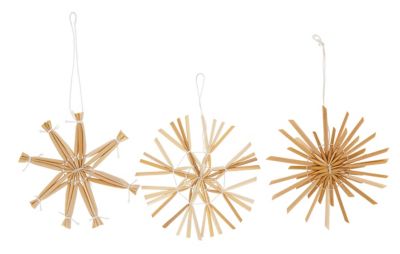 Étoiles en paille, avec fil à suspendre, couleur : nature, dim. : 6 cm Ø, contenu : 42 étoiles.
