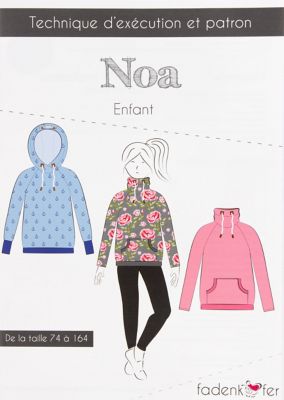 Fadenkäfer Patron "Hoodie raglan Noa" pour enfants, avec des explications pour 2 modèles, taille : 74 - 164 (taille française : 12M - 15A), niveau de difficulté : facile, tissu recommandé : tissu sweat-shirt, tissu polaire, tissu maille, tissu jersey solide.