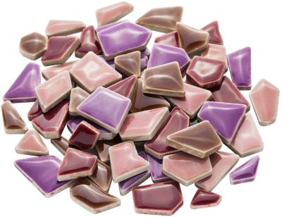 Flip Mini Mosaïque céramique, résistante au gel et à la chaleur, forme polygonale, couleur : mélange violet, dimensions : 10-20 mm, épaisseur : 4 mm, contenu : 200 g = env. 160 pièces. Suffit pour une surface d'environ 15 x 15 cm.