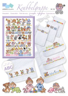 Grilles de broderie "à la crèche". Adorables motifs multicolores pour réaliser de nombreux projets de broderie pour enfants. Fasicule de 6 pages, explications et grilles colorées. Dim. 21 x 29,5 cm.