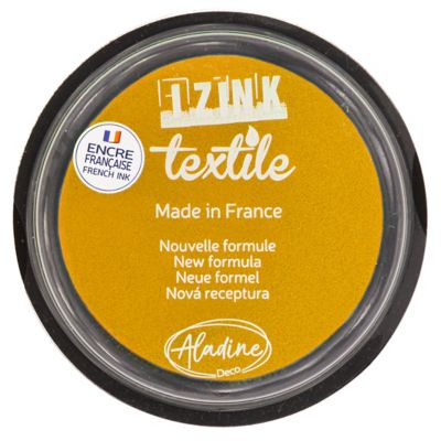 IZINK Encreur textile, jaune, adapté à des articles en coton, lin ou soie. Lavable jusqu'à 30° C après la fixation au fer à repasser. Dim. : 7,5 cm Ø.