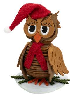 Kit créatif "chouette de Noël" en feutrine pour réaliser une décoration de chouette de Noël de 19 cm, couleur : marron/rouge, contenu : pièces en feutrine prédécoupées, bâton en bois, bonnet, écharpe et notice explicative. Composition : 100 % polyester. Uniquement pour la décoration.