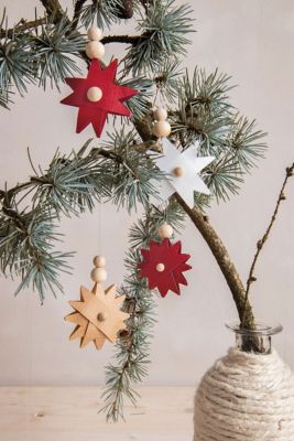 Kit créatif « mini sachets - étoiles avec effet 3D » pour la confection de 21 petites étoiles de 4,5 cm Ø, couleurs : blanc, marron, rouge (6 étoiles par couleur), contenu : 18 sachets de 4,5 x 6 cm, 42 boules de bois de 10 mm Ø, 21 boules de bois de 8 mm Ø, 42 demi boules de bois de 6 mm Ø, 10 m de fil transparent et une notice explicative.