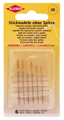 Kleiber Aiguilles à broder avec bout rond, épaisseur : 0,94–1,14 mm, longueur : 4–4,8 cm, contenu : 6 pièces. Composition : acier.