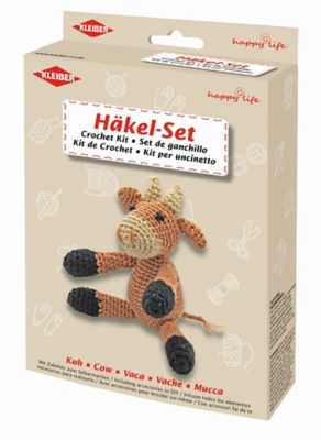 Kleiber Kit crochet "vache", beige/marron/noir, pour la confection d'une vache de 18 x 8 cm, contenu : crochet, aiguille, pelotes de laine, matériau de rembourrage et une notice explicative. Recommandé pour des enfants à partir de 14 ans.