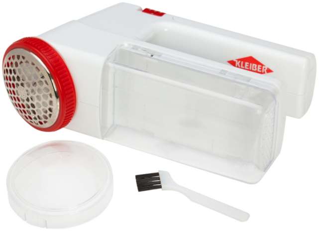 Kleiber Rasoir anti-bouloche, pour enlever les nœuds, peluches, etc. des textiles en laine, avec pinceau de nettoyage. Fonctionnement avec 2 piles AA à 1,5 V, livré sans piles ! Dim. : 9 x 5 x 15 cm.