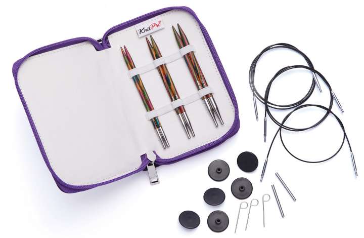 Knit Pro Kit d'aiguilles circulaires "symfonie". Contenu : respectivement une paire de pointes d'aiguilles dans les épaisseurs : 6, 7, 8 (longueur d'aiguille : 11,5 cm), respectivement 1 câble pour 60 cm, 80 cm et 100 cm (longueur = câble + pointes), un étui de rangement, 6 embouts, 3 clés de câble, 2 connecteurs et un mode d'emploi. Composition : bois de bouleau