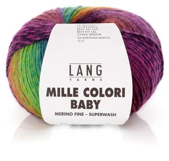 Lang Yarns Mille Colori Baby. Que ce soit pour les petits ou les grands enfants, pour les vêtements, les accessoires ou les chaussettes – avec la qualité Mille Colori Baby équipée de la qualité Superwash, vous obtenez un motif coloré directement depuis la pelote. Grâce aux fibres fines de la laine mérinos, ce fil est particulièrement agréable sur la peau.