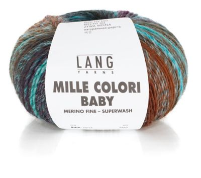 Lang Yarns Mille Colori Baby. Que ce soit pour les petits ou les grands enfants, pour les vêtements, les accessoires ou les chaussettes – avec la qualité Mille Colori Baby équipée de la qualité Superwash, vous obtenez un motif coloré directement depuis la pelote. Grâce aux fibres fines de la laine mérinos, ce fil est particulièrement agréable sur la peau.