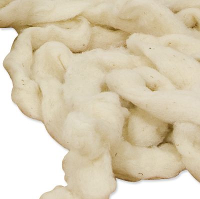 Laine de mouton, lavée, cardée et peignée, reste suint : env. 0,7-1 %, contenu : 300 g, correspond à env. 6,9 litres, composition : 100 % laine de mouton, lavable à froid à la main.