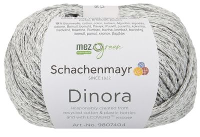 Laine Schachenmayr Dinora. Comme de nombreux autres fils de la marque Schachenmayr, Dinora fait partie de la gamme MEZ Green, grâce à sa composition respectueuse de l’environnement. La viscose provient à 100 % de forêts gérées de manière durable, et le polyester est issu du recyclage de bouteilles en PET. Un choix responsable pour tricoter en toute conscience.