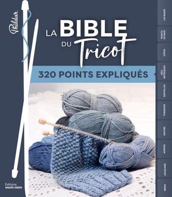 Livre "La bible du tricot". 300 points sont réunis dans ce recueil. Une somme de bonnes idées de points ou de motifs dans laquelle puiser pour la réalisation de tous les ouvrages. Chacun des points, des points de base les plus simples aux points fantaisie plus élaborés, est photographié en gros plan, accompagné d’un texte explicatif et d’un diagramme composé de signes symboliques. Tous les signes utilisés accompagnent chaque point pour une meilleure compréhension du diagramme. La classification par type de point permet une sélection rapide, selon l’aspect ou la technique, du point recherché. Un ouvrage indispensable à glisser entre ses pelotes de laine !