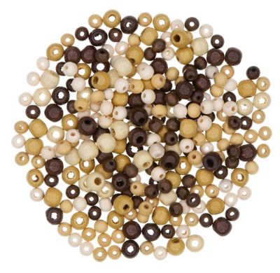 Lot de perles en bois rondes, couleur : marron, écru naturel, dimensions : 6-8 mm Ø, contenu : 50 g = env. 430 pièces.