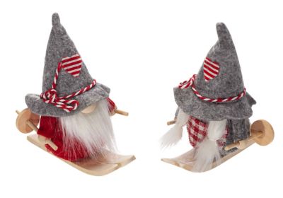 Lutins à ski en feutre, rembourrés de sable, skis et bâtons de ski en bois, couleur : rouge/gris/blanc, dimension : 9,5 x 5 x 10,5 cm Ø, contenu : 2 pièces. Uniquement à usage décoratif.