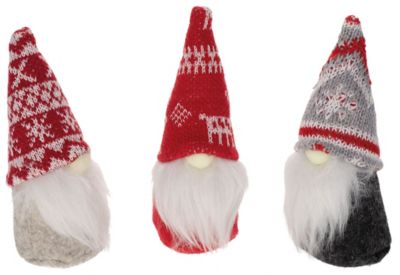 Lutins déco en feutrine, tissu tricoté et imitation fourrure à poils longs, rembourrés de sable, couleur : rouge-gris-blanc, dim. : 10 x 3,5 cm, contenu : 3 pièces. Composition : 100 % polyester. Uniquement pour la décoration.
